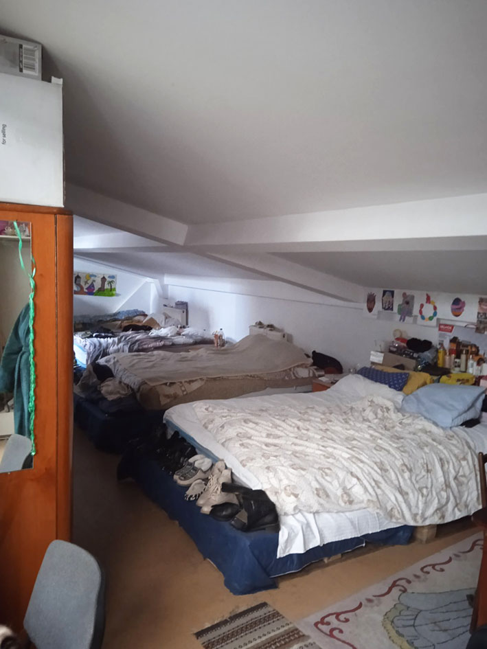 Приїхали сюди, тут були ще сирі стіни та піддони замість ліжок. І почали обживатися. Ліжка, матраци та подушки – це вже було потім. І ось вже майже два роки живемо.