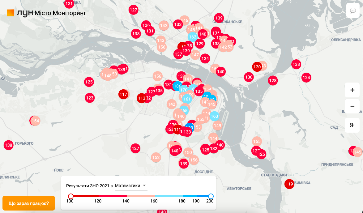 Через війну багато українців були вимушені переїхати, часто на новому місці обирати школу. Один з критеріїв, за яким можна оцінити навчальний заклад – результати зовнішнього незалежного оцінювання – ЗНО. Тепер вони доступні на інтерактивній карті ЛУН Місто. Джерелом даних став розділ Opendata Українського центру оцінювання якості освіти.
