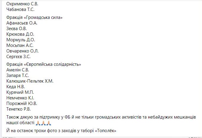Також дякую за підтримку у ФБ, й не тільки громадських активістів та небайдужих мешканців нашої області.