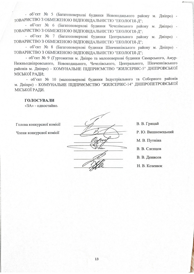 Решение Днепровского городского совета № 39 от 21.01.2020 года, в котором нам были назначены новые управители многоквартирных домов и отстранен от управления этими домами наш ЖЭК Самарского района, принимали, руководствуясь законами, приказами и протоколом заседания конкурсной комиссии от 16.01.2020 года № 4.