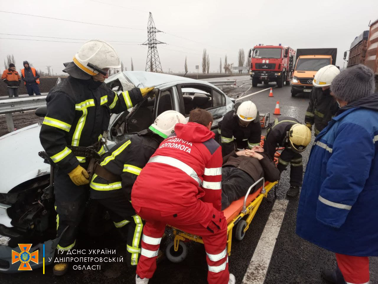 На місці аварії надзвичайники встановили, що під час руху зіткнувся вантажний автомобіль «Mersedes» з легковим авто «Hyundai».