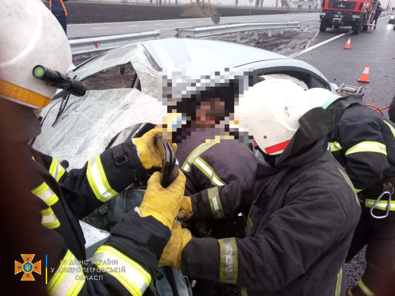Водія довелось вирізати за допомогою інструменту з автівки та теж було передано постраждалого працівникам швидкої для подальшої госпіталізації.