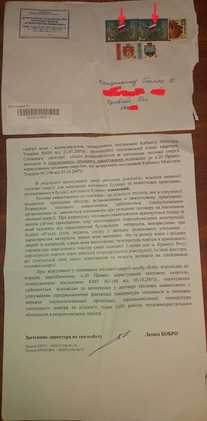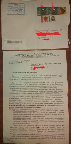 У Кривому Розі спалахнув скандал – комунальне підприємство “Криворіжтепломережа” відправляє відповіді на запити депутатам на конвертах з марками з російським прапором.