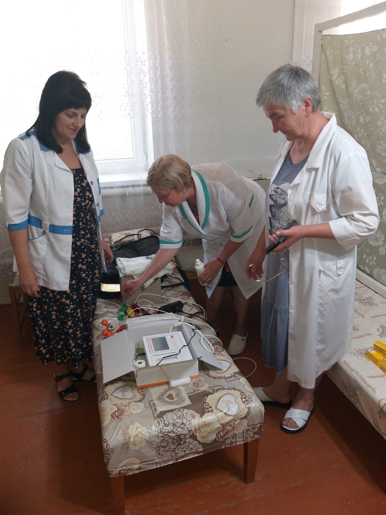 - проводять лікарські огляди та діагностичні процедури (ЕКГ, тестування рівня глюкози та холестерину у крові, вимірювання тиску);
