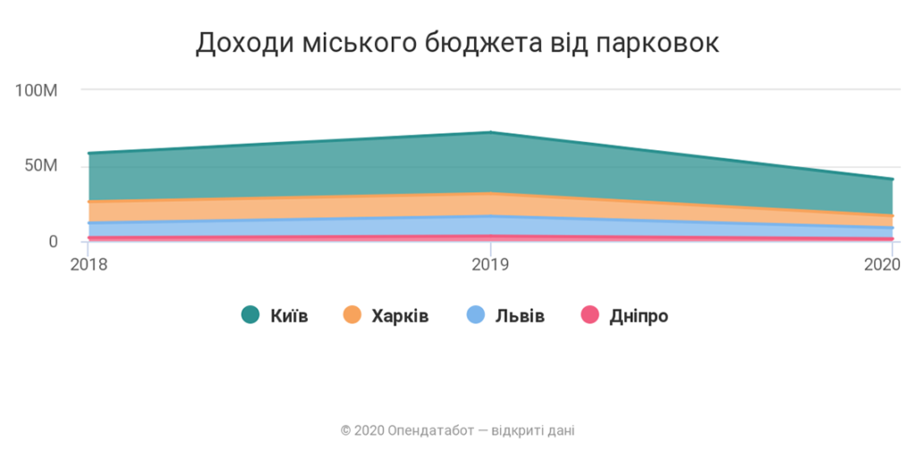 У першому півріччі 2020 році Дніпро заробило на паркуваннях 1.639.121 грн. При цьому, Львів заробив 7.235.700 грн, а Харків – 7.937.521 грн. Бюджет столиці України – Києва від оплати паркування в місті отримав за цей період 24.233.655 грн.