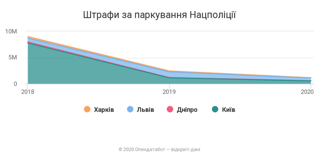 В 2018 році у Києві було виписано штрафів на 8 мільйонів гривень, у Львові – на 500 тисяч, у Харкові – на 300 тисяч, у Дніпрі – на 200 тисяч.