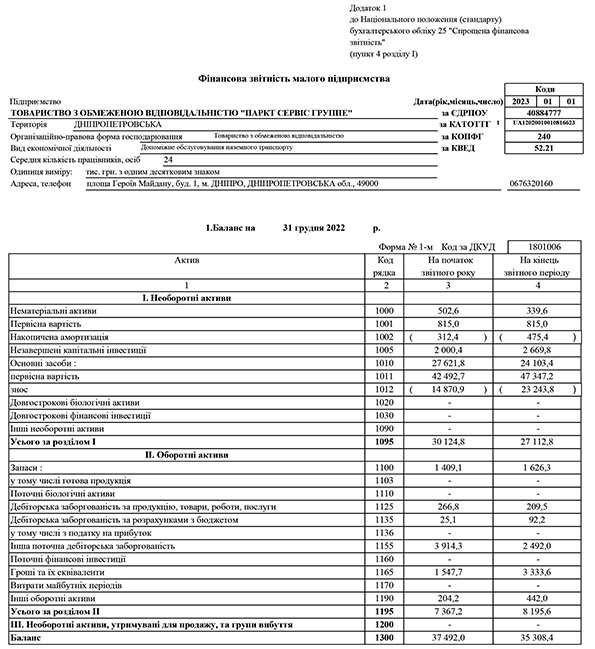 - Звіт «Паркт Сервіс Группе»