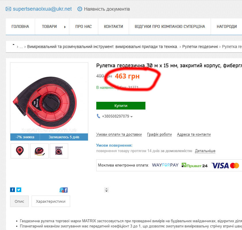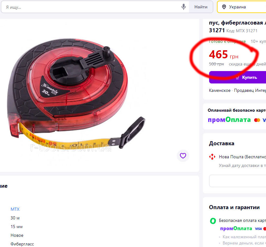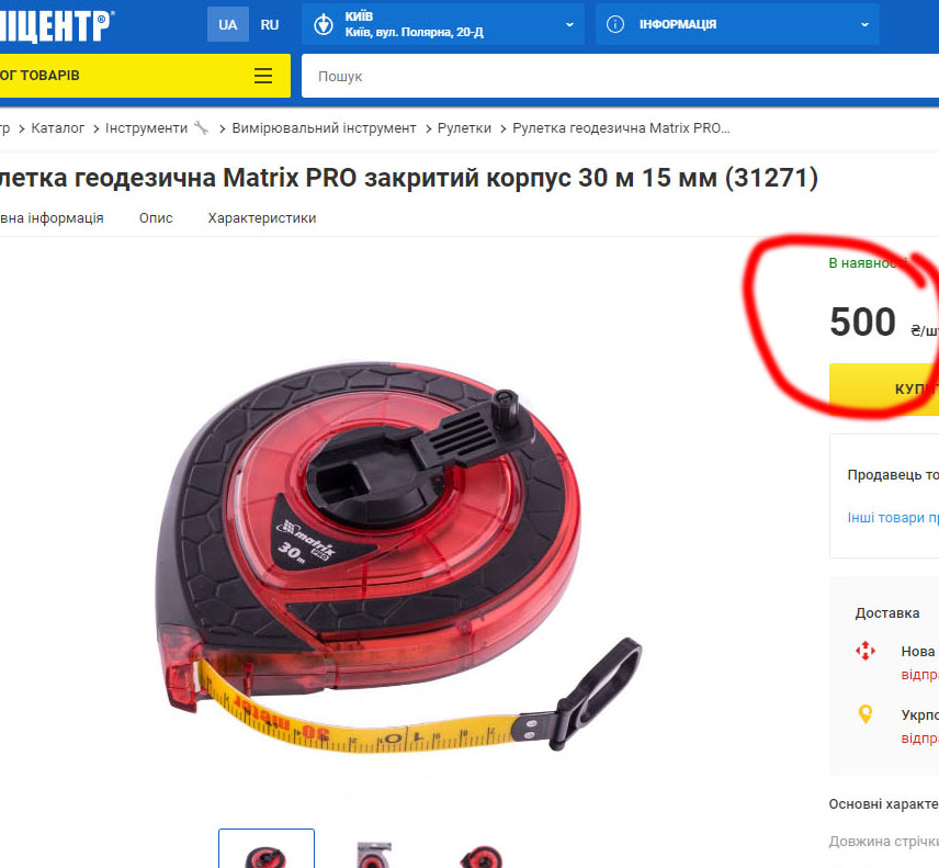 Інспекція з питань контролю за паркуванням Дніпровської міської ради закупила, без проведення конкурсу, у ФОП Спідчук Галини Григорівни 30 китайських рулеток MTX 31271.