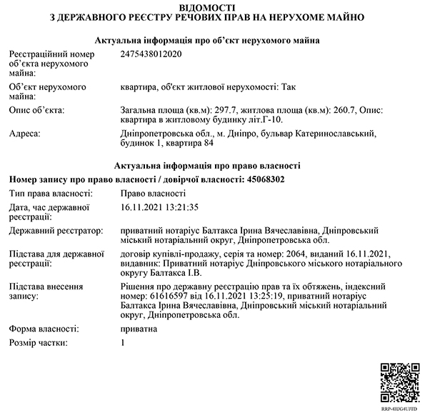 Про це стало відомо з його повідомлень в НАЗК та даних Держреєстру речових прав на нерухоме майно.