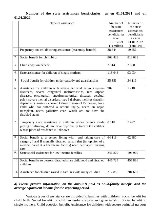 У звіті, фрагмент якого публікував телеграм-канал «Перший соціальний», наведено статистику соціальних виплат по народженню та вихованню дітей. Згідно з представленими даними, за 2021 рік кількість сімей, які отримують допомогу, пов’язану з дітьми, загалом значно скоротилася.