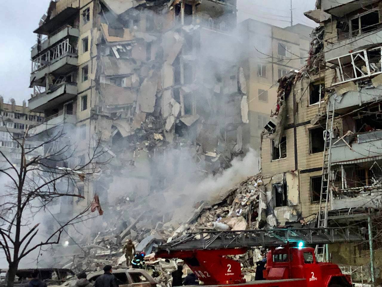 Росіяни поцілили у житловий будинок у Дніпрі. Подія сталась під час масованої ракетної атаки російських військ проти України біля 15.50 14 січня.