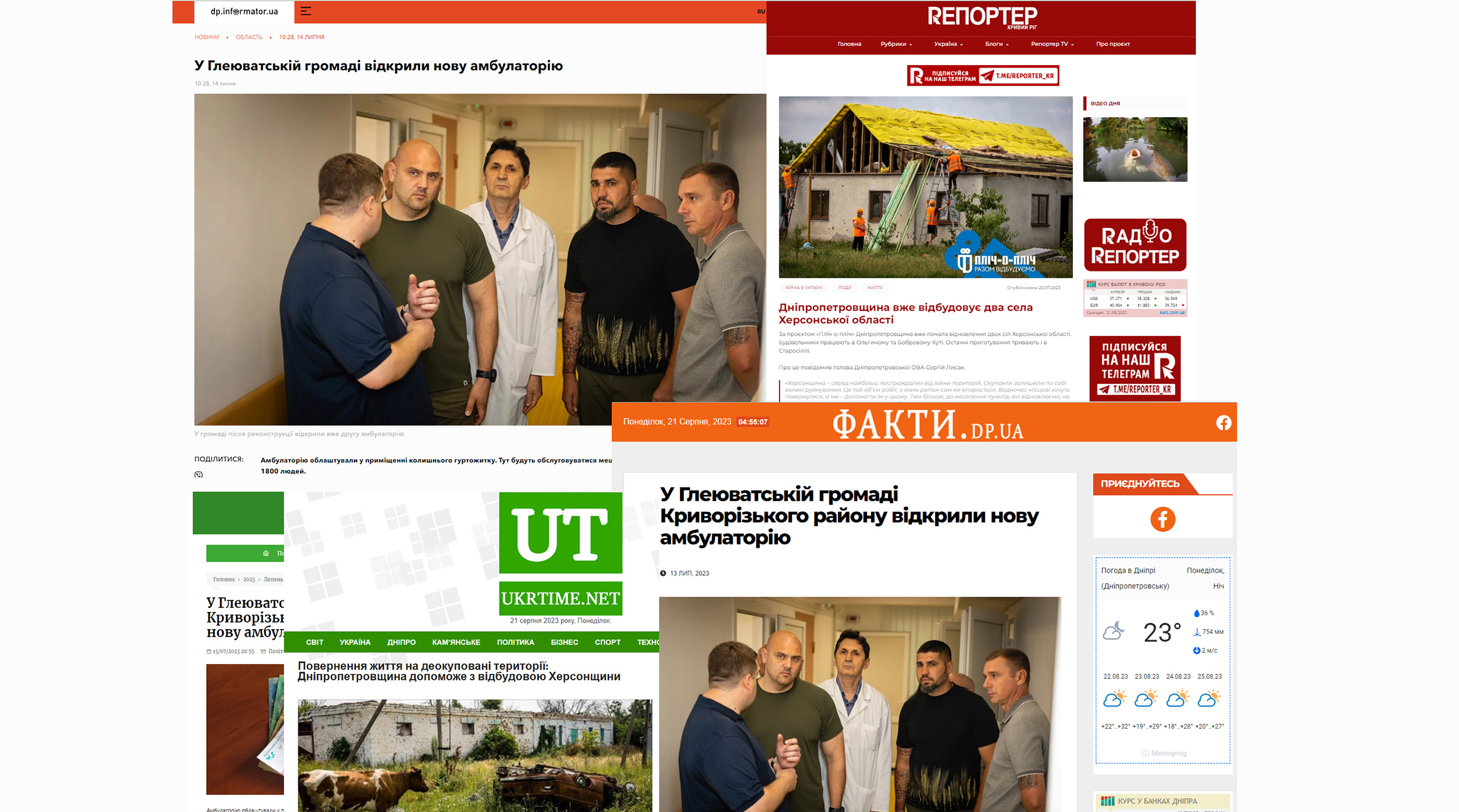 - «У Глеюватській громаді Криворізького району відкрили нову амбулаторію»,