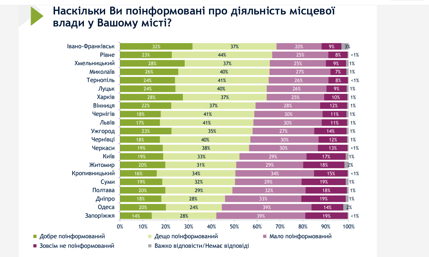 Але Восьме Муніципальне опитування IRI свідчить, що мешканці нашого облцентру – на третьому місці з кінця по поінформованності про діяльність місцевої влади Дніпра: