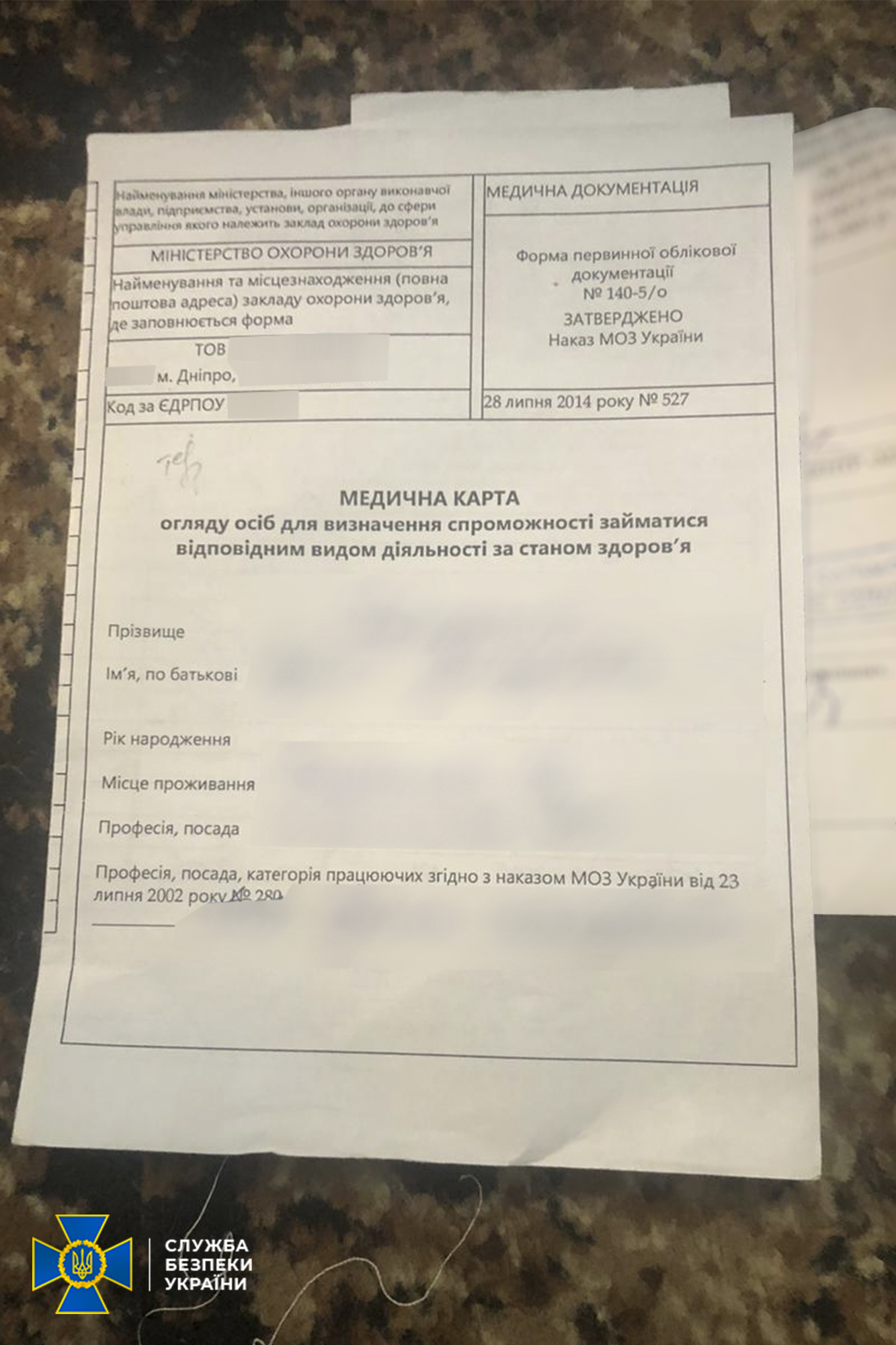 Крім того, в одному з ТЦК Дніпропетровщини вилучено медичну документацію та військові квитки військовозобов’язаних, які обґрунтовано підозрюються у поданні фальсифікованої документації щодо стану здоров’я.