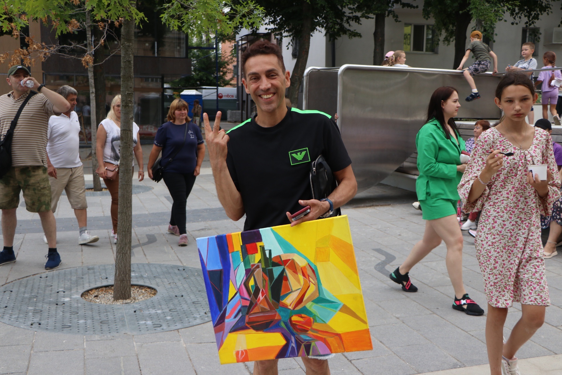 «Сьогодні ми разом з департаментом гуманітарної політики ДМР та Школою сучасного образотворчого мистецтва та дизайну ім. Вадима Сідура проводимо другу акцію, але масштабну. Ми вирішили зробити три локації в популярних місцях, які відвідують дніпряни та гості міста. Це Набережна, сквер Прибережний та вулиця Яворницького, де ми зараз із знаходимось. Єдина відмінність – це різноманіття картин, які нам надали художники Дніпра та інших міст України», – зазначив голова фонду «Культурна столиця» Григорій Гельфер.