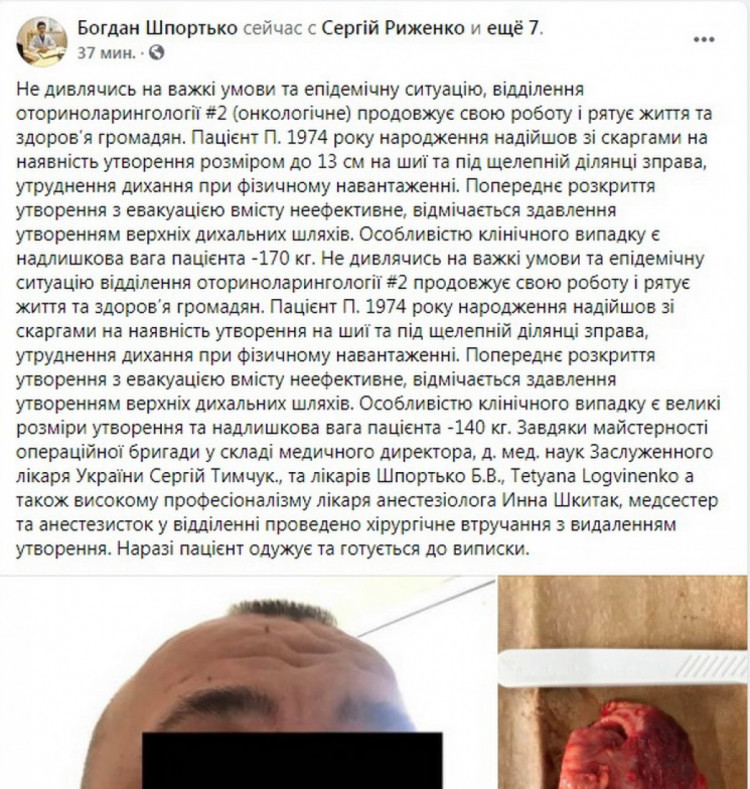 Бригада з трьох хірургів, анестезіолога, медсестр та анестезисток вдало видалила пухлину.