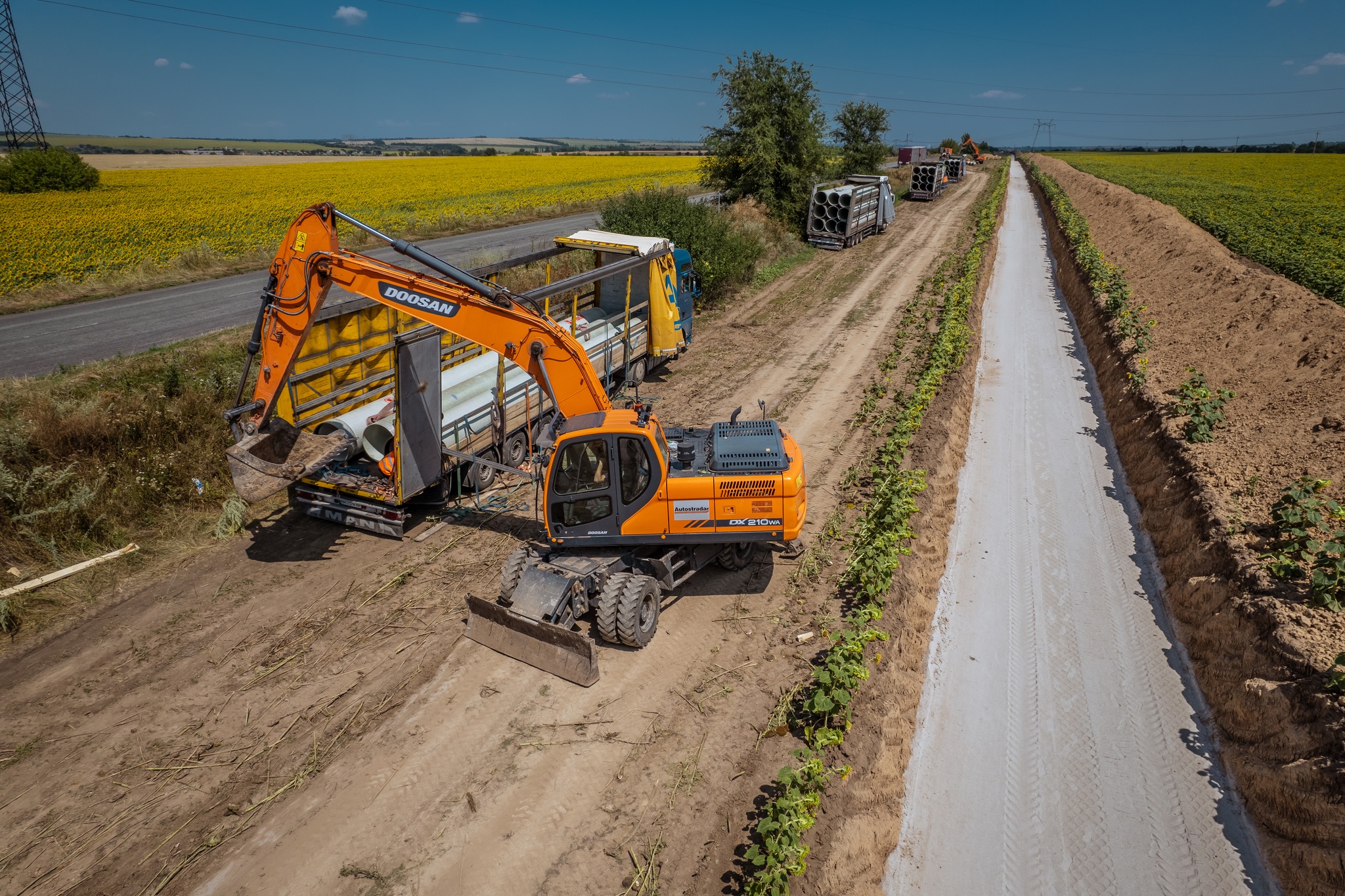 «Це дуже складний об’єкт, ланки якого проходитимуть через сільськогосподарські угіддя, під водою та автомобільними дорогами. Наразі наша команда вже облаштувала 72 км траси. Триває монтаж склопластикових труб. Труби великого діаметра, виготовлені із армованого скловолокном поліефіру», — відзначили в компанії.