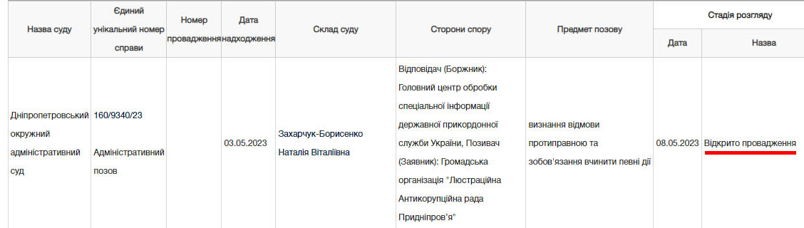 Дніпропетровський окружний адміністративний суд відкрив провадження в адміністративній справі за позовом редакції інтернет-газет «Лица» та «Антикорупційне Придніпров’я» – Громадської організації «Люстраційна антикорупційна рада Придніпров’я» (ГО «ЛАРП»).