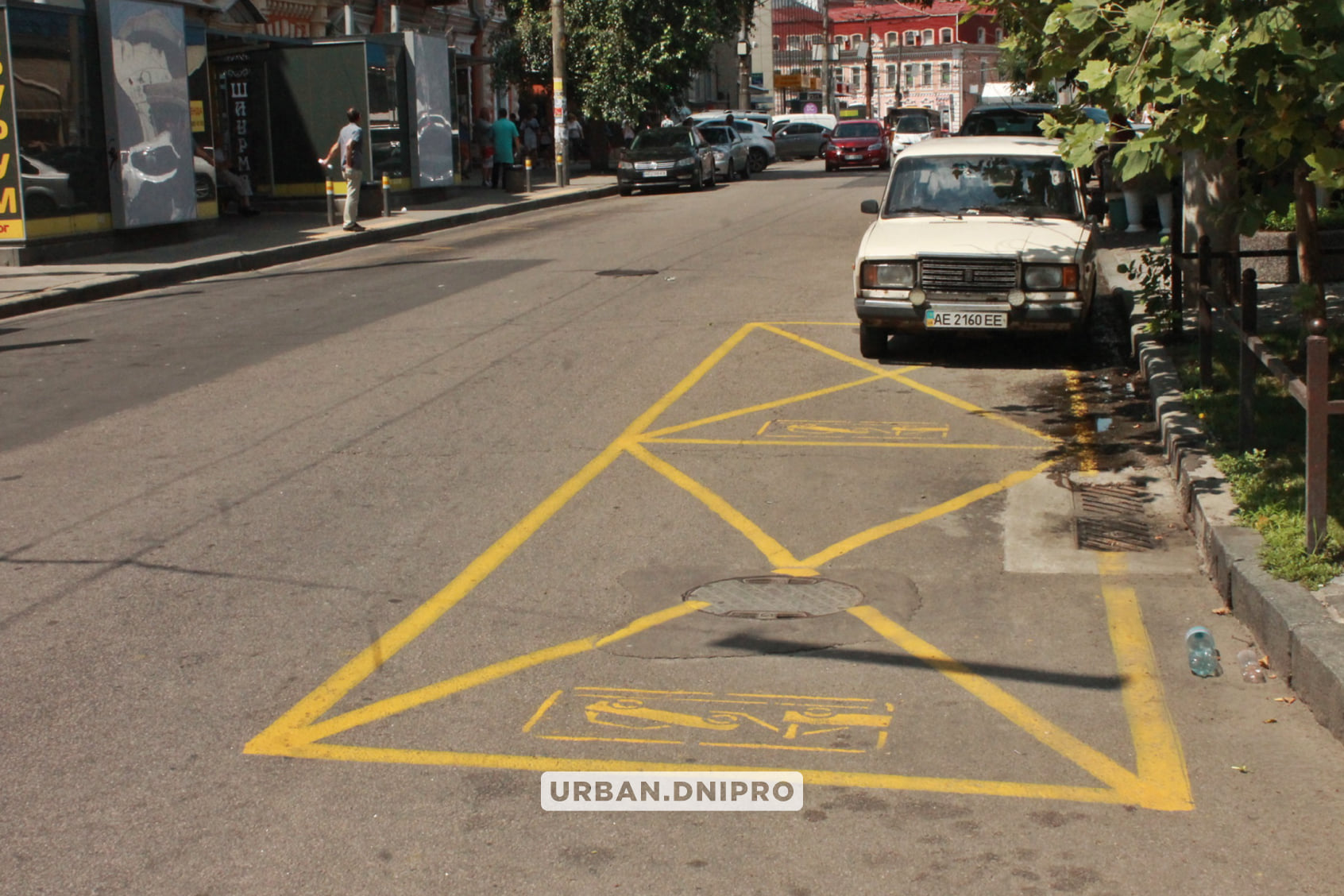 У Дніпрі намалювали “жовті конверти” – розмітку, що позначає місця, в яких заборонено стоянку.