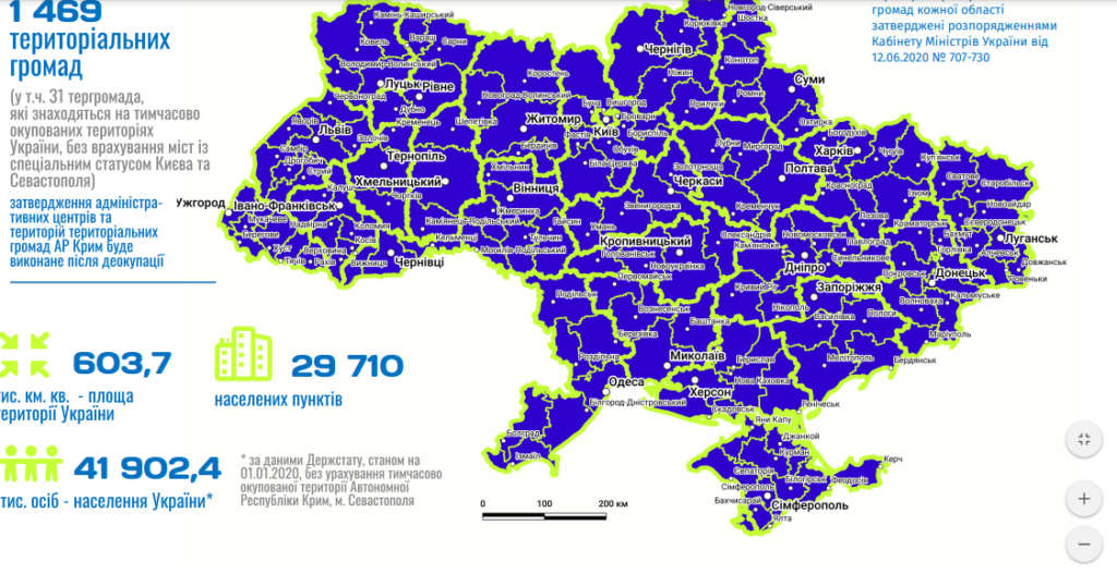У 2020 році ми закінчили важливий етап реформи – створили по усій країні нові громади і нові райони, межі та склад яких ви знайдете у цьому Атласі».